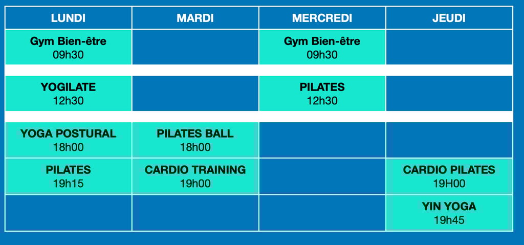 Vous y retrouvez des exercices de Pilates, de gym douce et de renforcement avec des charges.