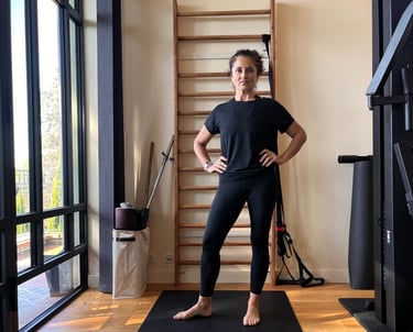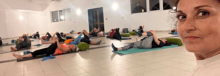 Mélange de Pilates et Yoga, combinaison de postures de Yoga et de répétitions de mouvements type Pilates. Le mélange complet permet de ressentir le gainage des muscles profonds et l’allongement de sa posture.